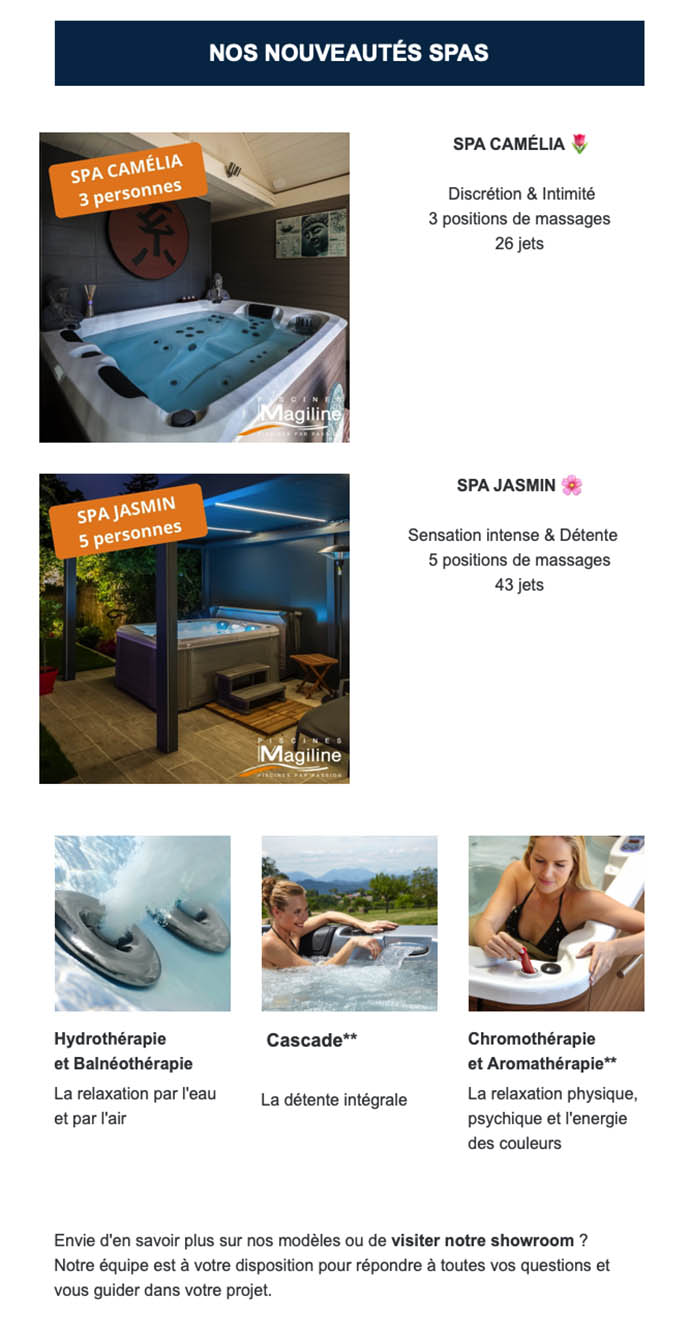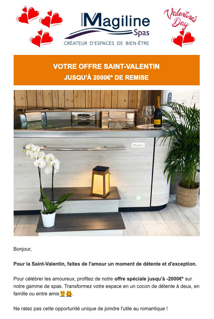 OFFRE ST-VALENTIN 2025, JUSQU’À 2000€ DE RÉDUCTION SUR VOTRE SPA 29 Jan 2025 | Actualités piscines OFFRE SPA SPÉCIALE ST-VALENTIN Découvrez le spa de vos rêves – Jusqu’à 2000 € de réduction TÉLÉCHARGEZ LE NOUVEAU CATALOGUE SPA EN SAVOIR +